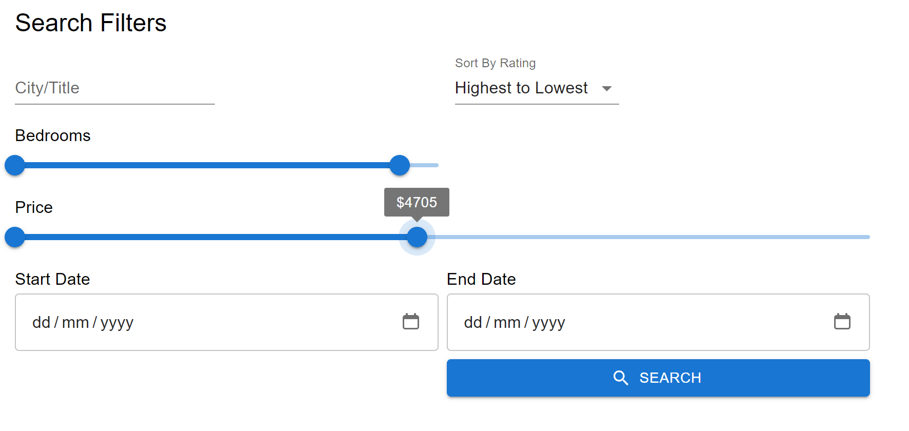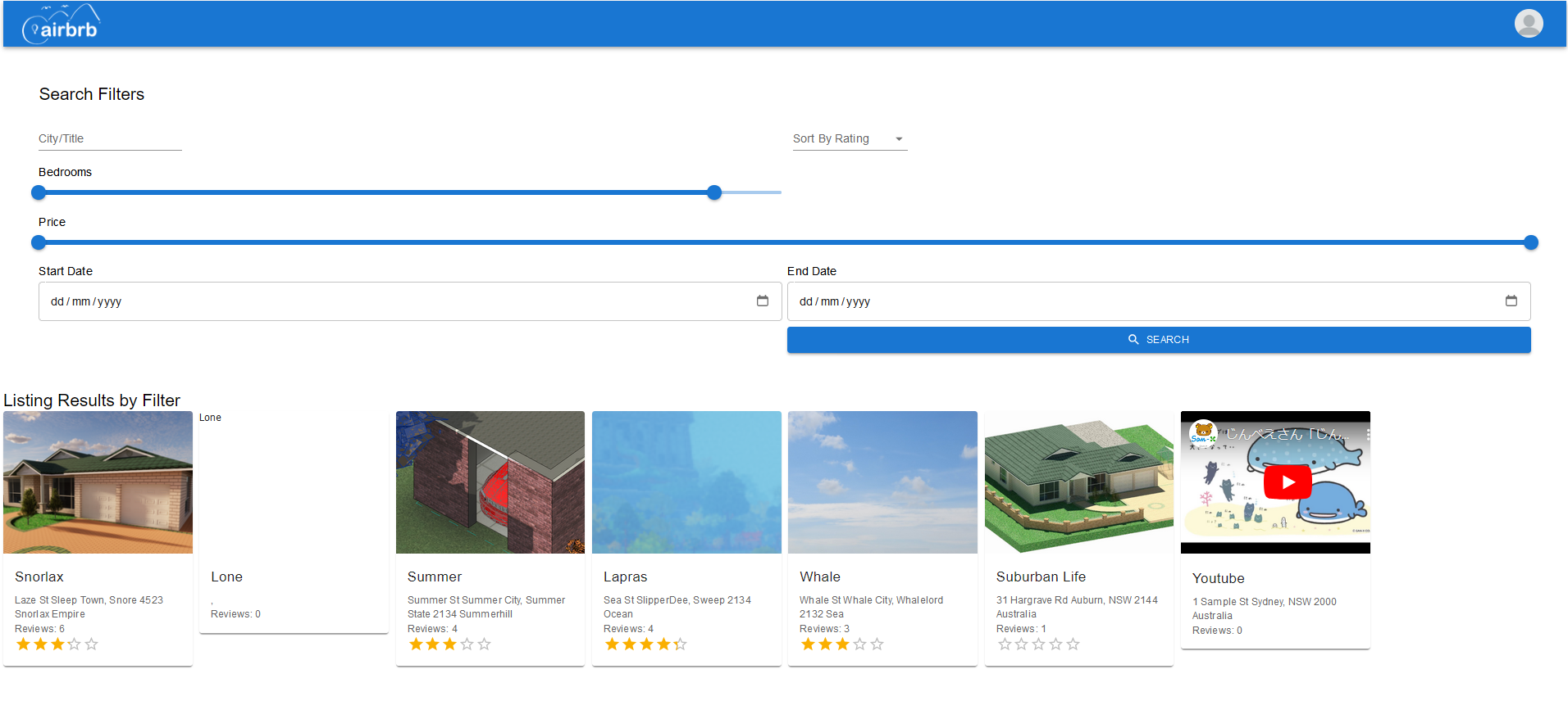 An Airbnb-inspired booking app with dynamic multi-page functionality. Features included calendars and the ability to create, view, update, or remove booking listings.